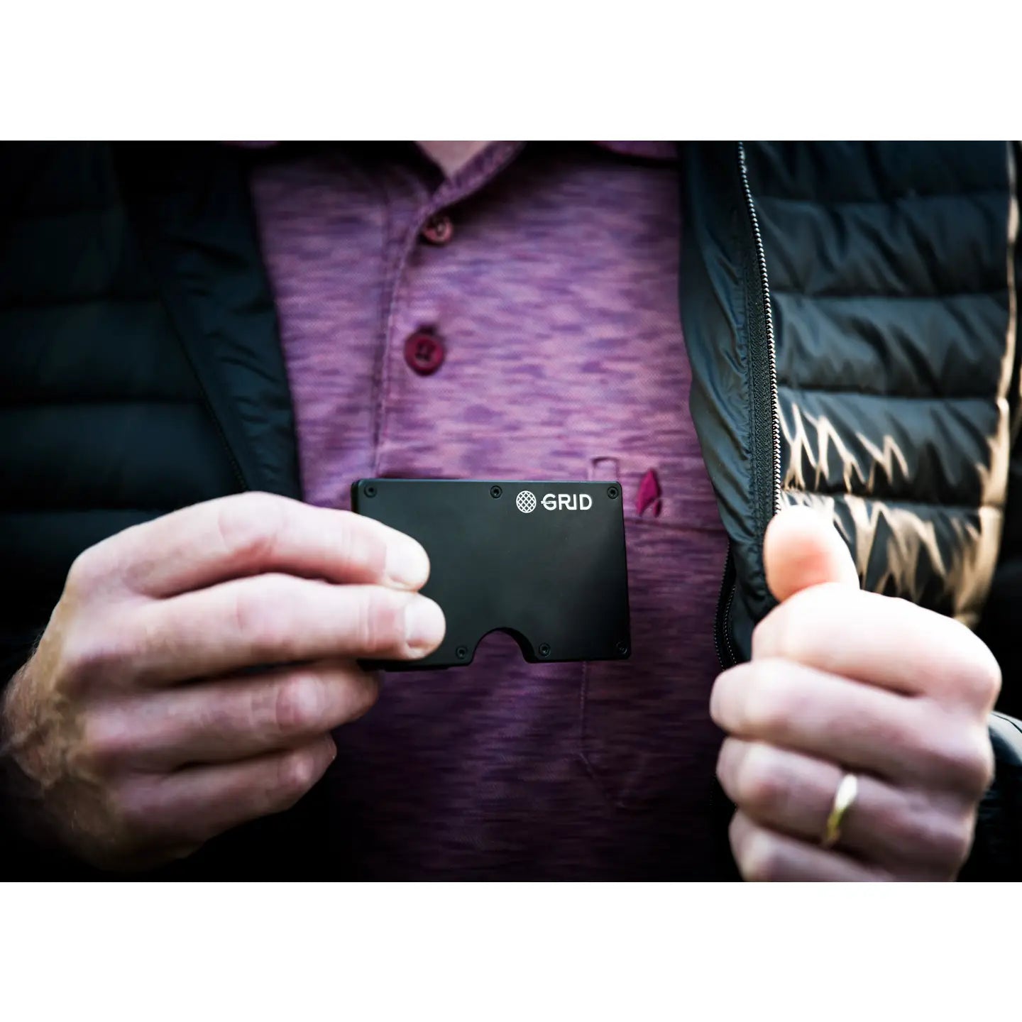 The slimmest wallet you can own, GRID is made of two aluminum plates and is only 6mm thick. It can hold up to 12 cards and has the money clip for your cash. GRID lets you part ways with bulky, thick wallets and organize your credit cards into a slim, stylish wallet.