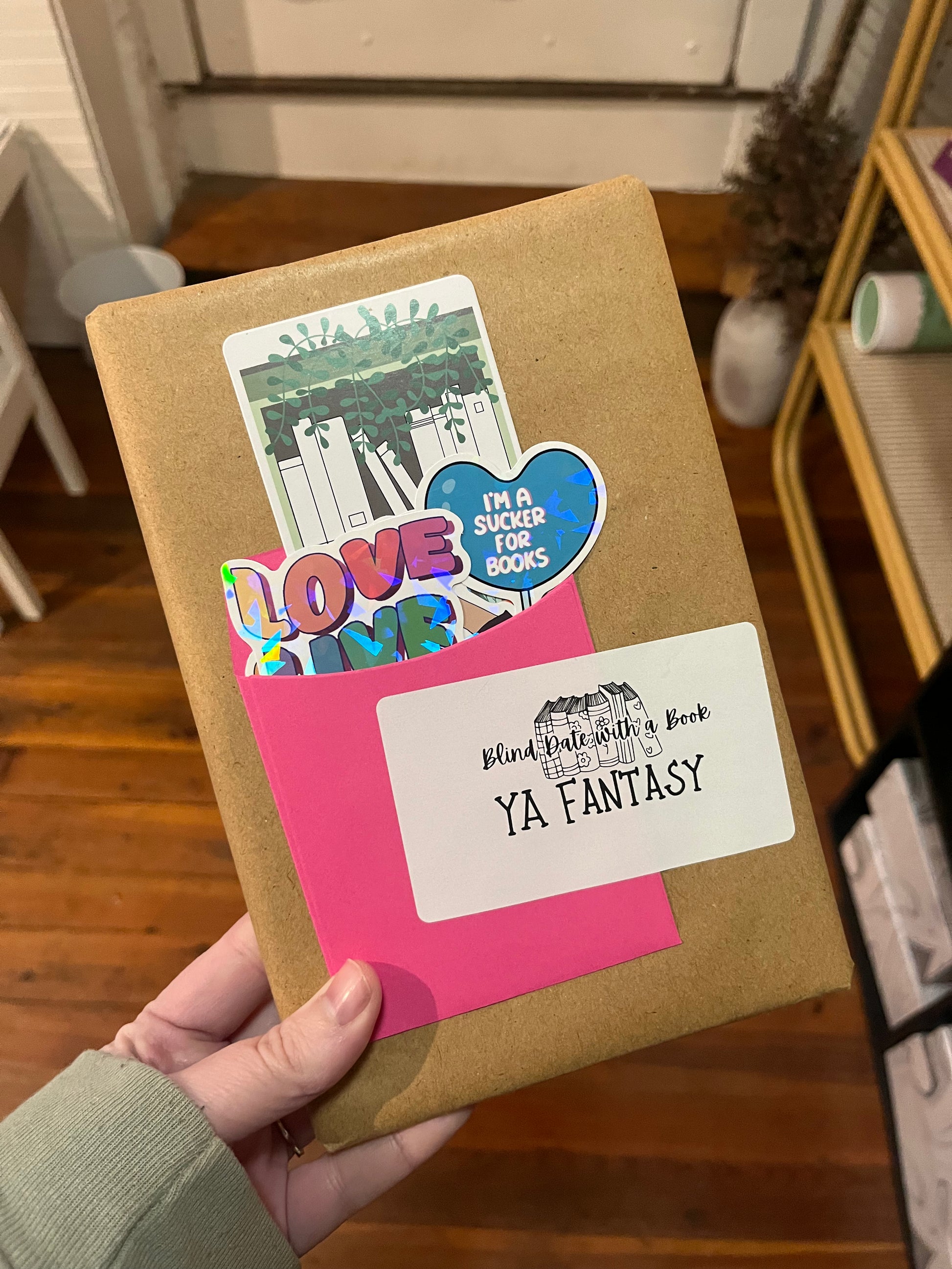 Each Blind Date with a Book comes with a new OR gently loved book of the genre of your choice (or we can surprise you)! It also includes a bookmark + bookish stickers. (All items are chosen at random. Items may differ from what is pictured.)