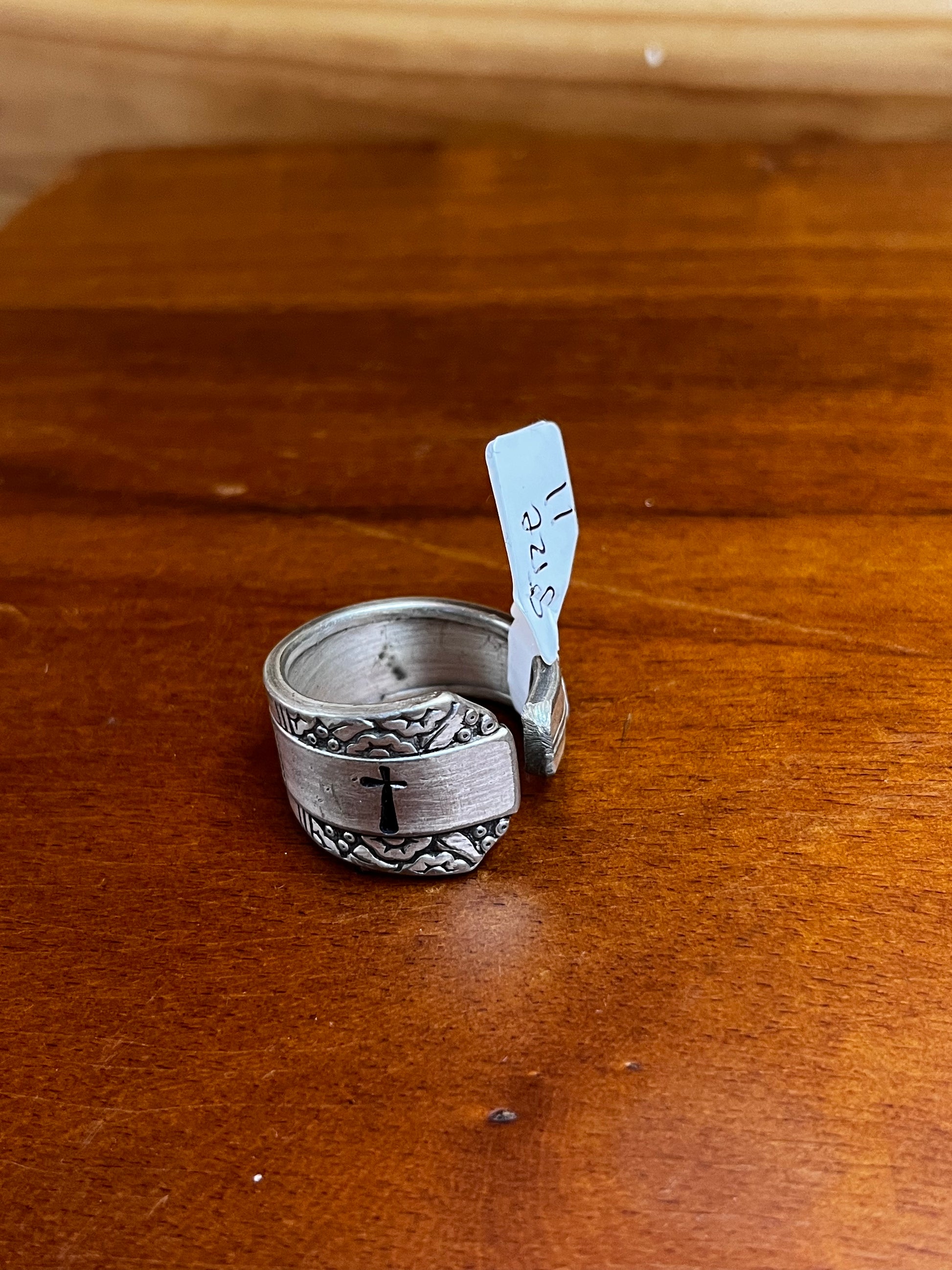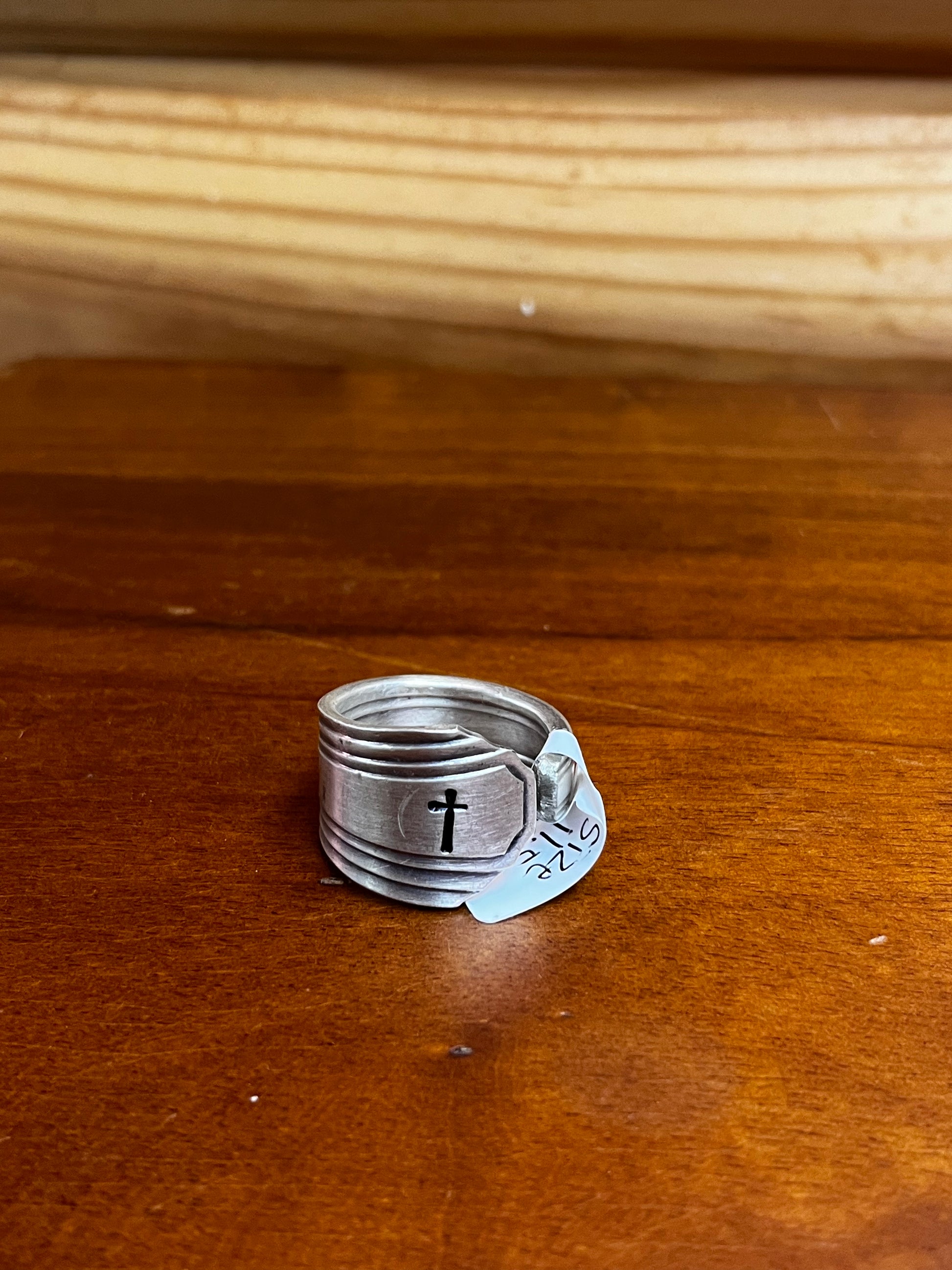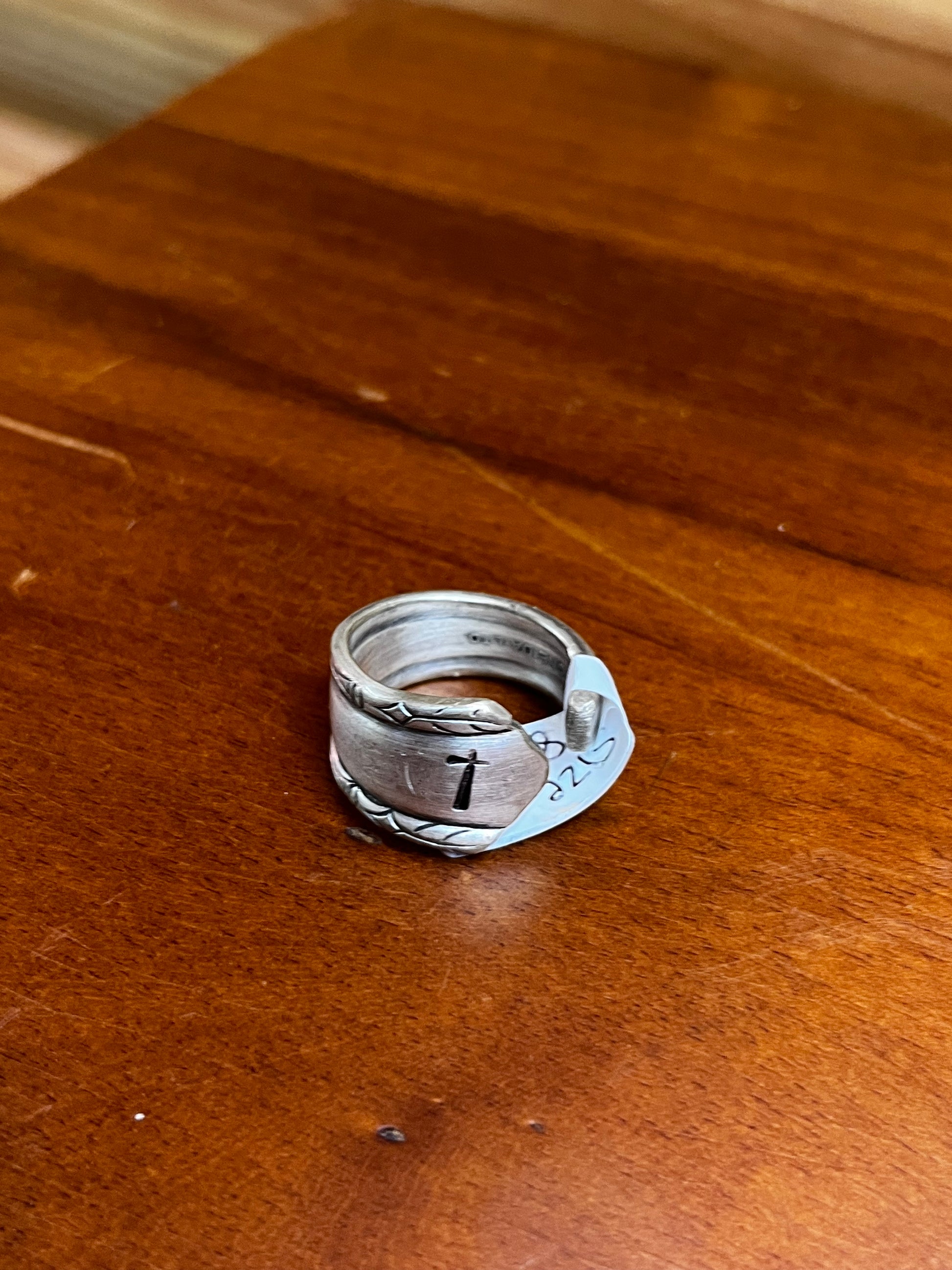 Cross Stamped Handmade Spoon Rings