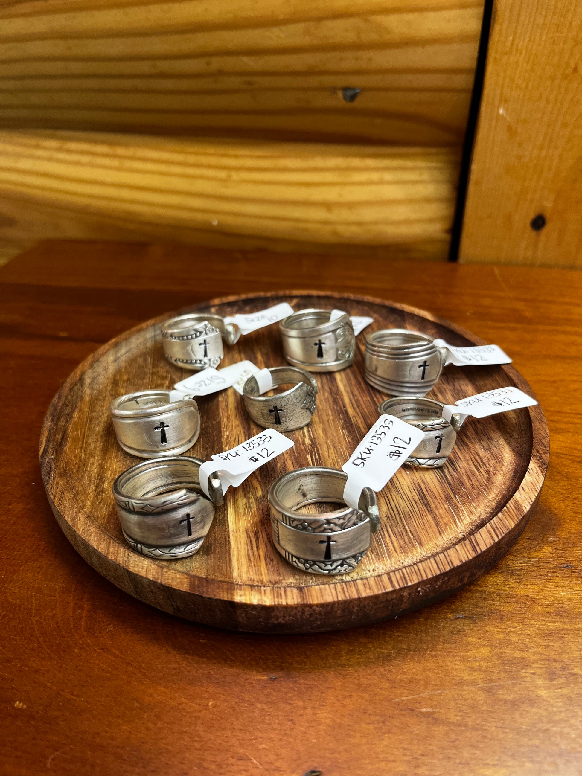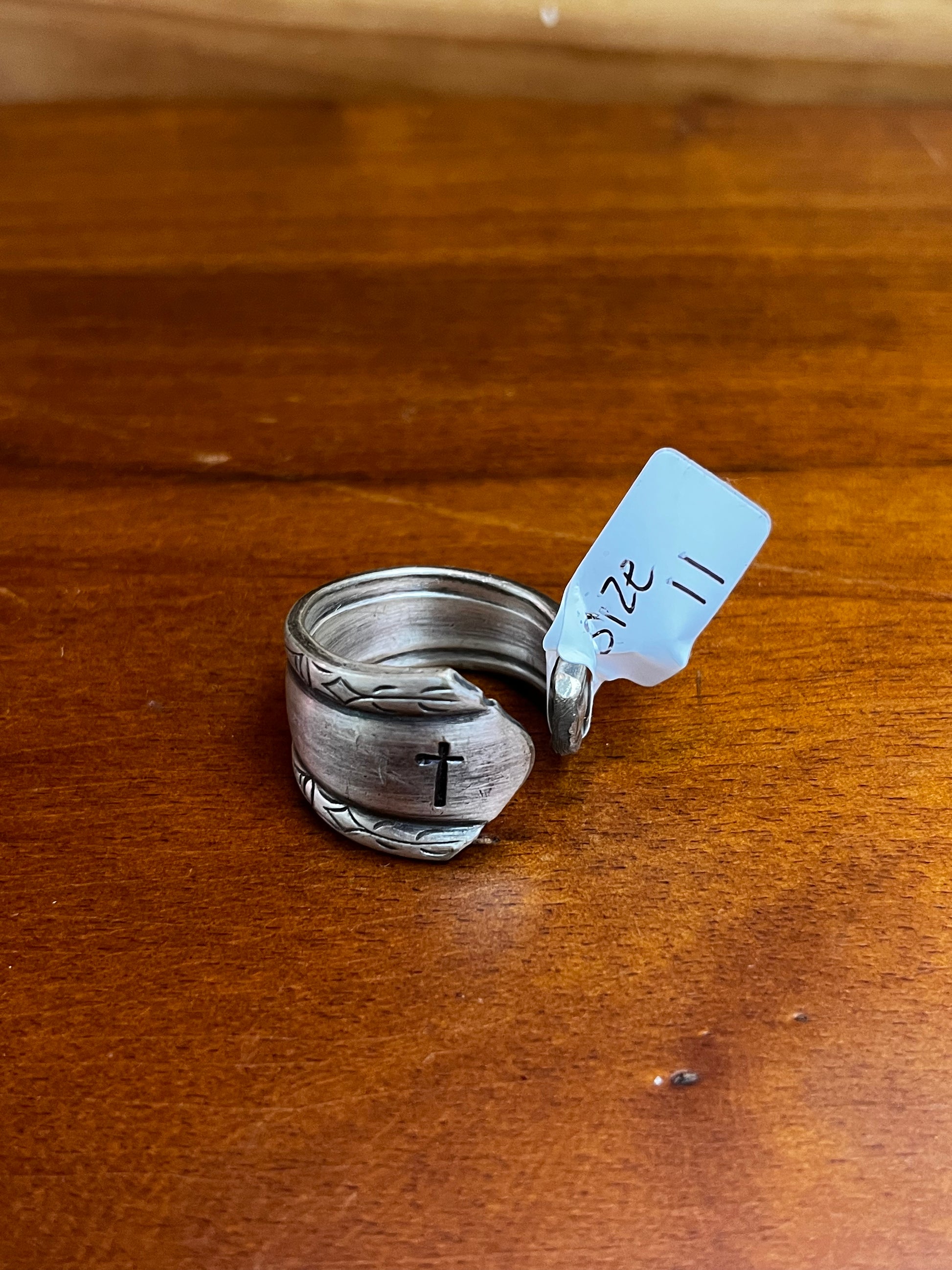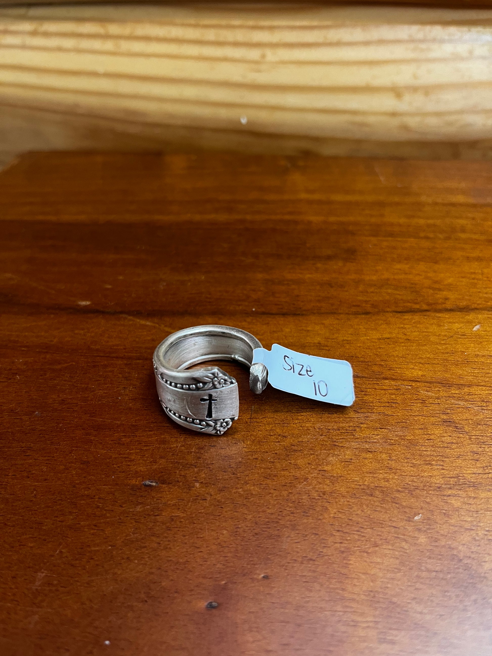 Cross Stamped Handmade Spoon Rings