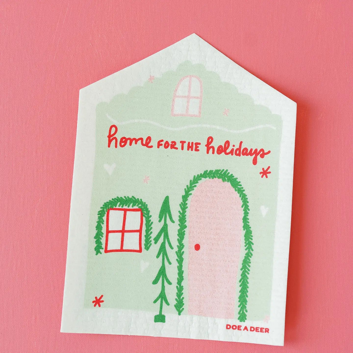 Celebrate the holiday season with our Home for the Holidays Large Swedish Dish Cloth. This festive cloth is perfect for all your dish washing needs. Made with high-quality, absorbent materials, it will leave your dishes sparkling clean. Bring joy and charm to your kitchen with this must-have holiday essential.
