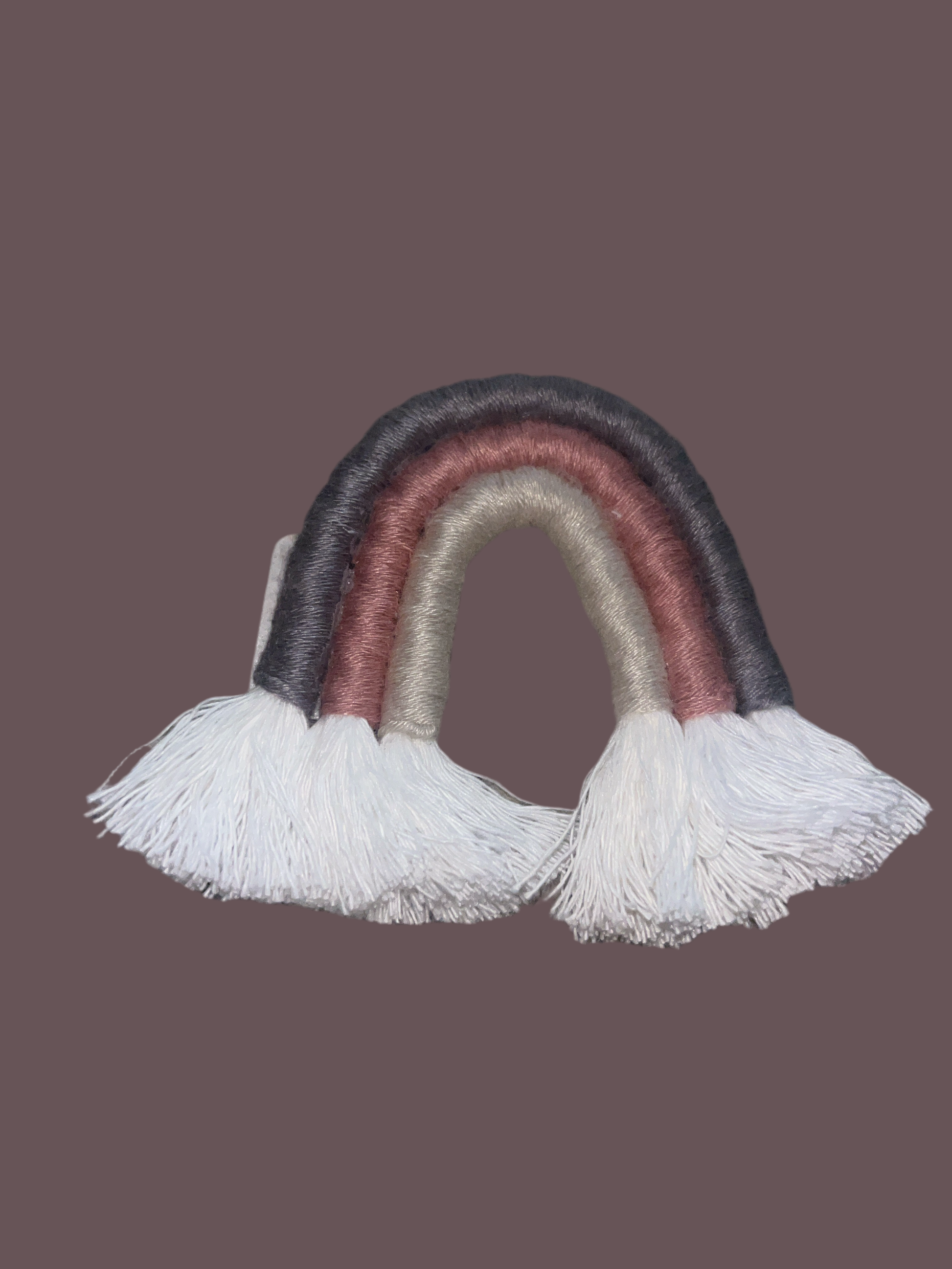 Brighten up any space with our Macrame Rainbow Magnet! This unique, handmade piece adds a touch of color and charm to your fridge, locker, or any magnetic surface. Say goodbye to boring magnets and hello to a fun and playful addition to your home decor.