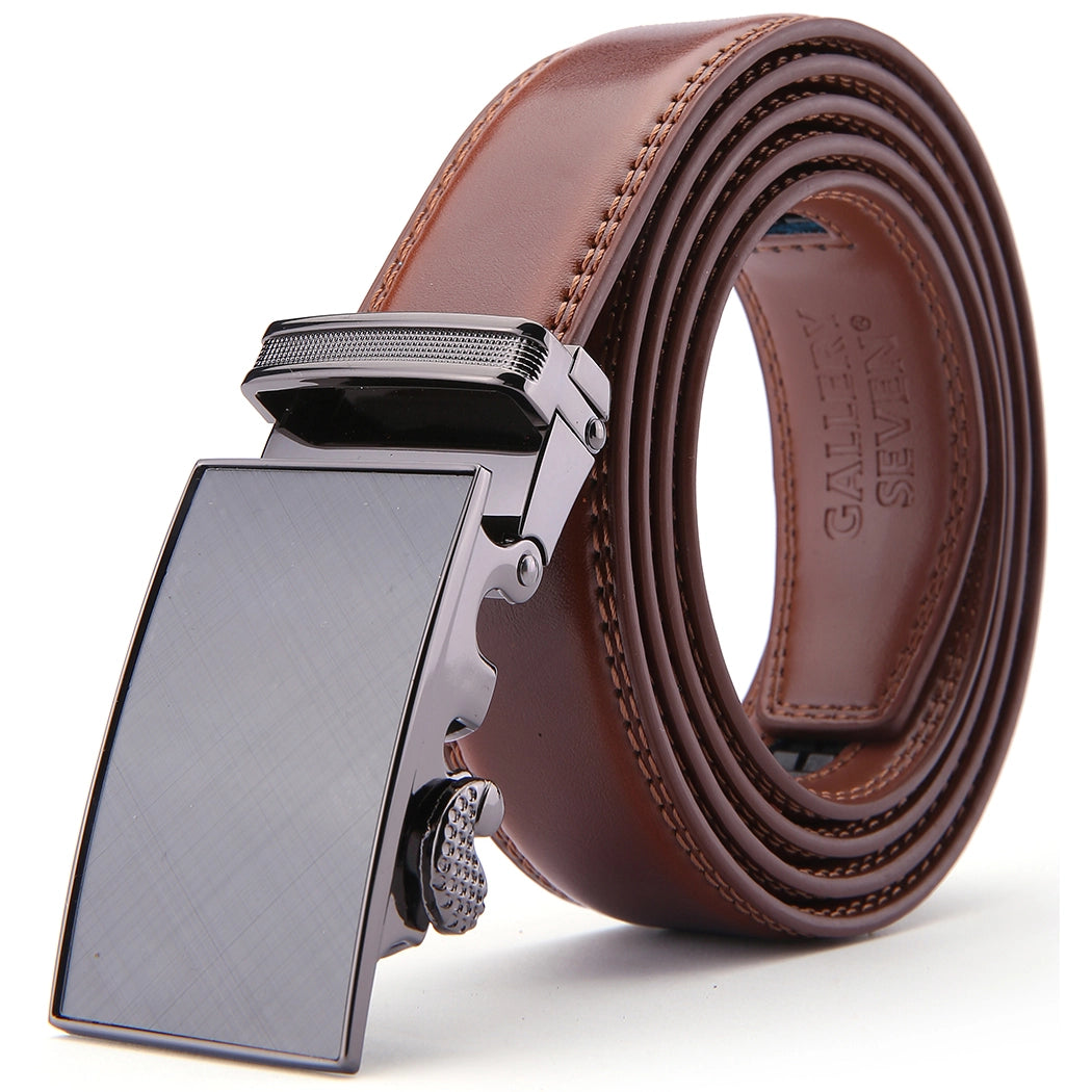 Etched Leather Burnt Umber Ratchet Belt