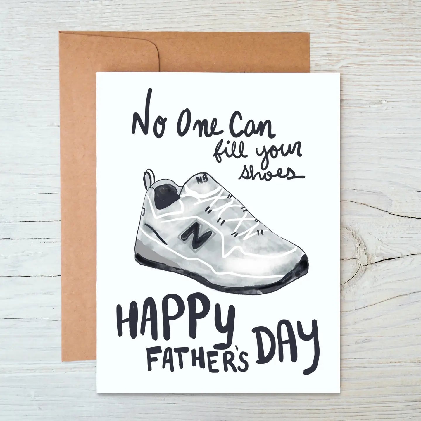 Dad jokes meet dad shoes on this hilarious Father's Day card! Featuring trendy New Balance sneakers and the cheeky message "No One Can Fill Your Shoes," it's the perfect way to celebrate the man who's both irreplaceable and probably still wearing the same kicks from 2005. Give him a card that'll have him laughing all the way to the grill!