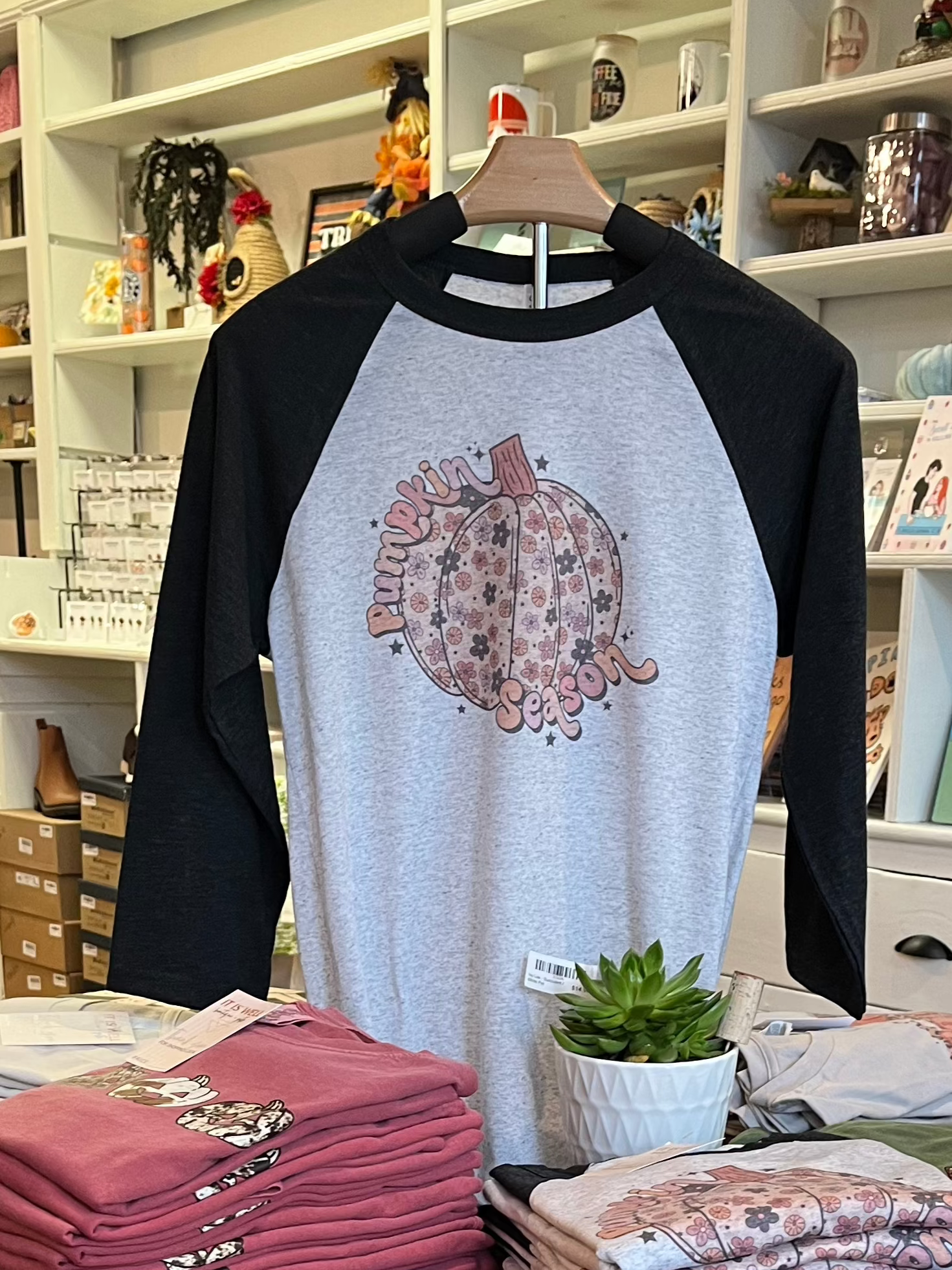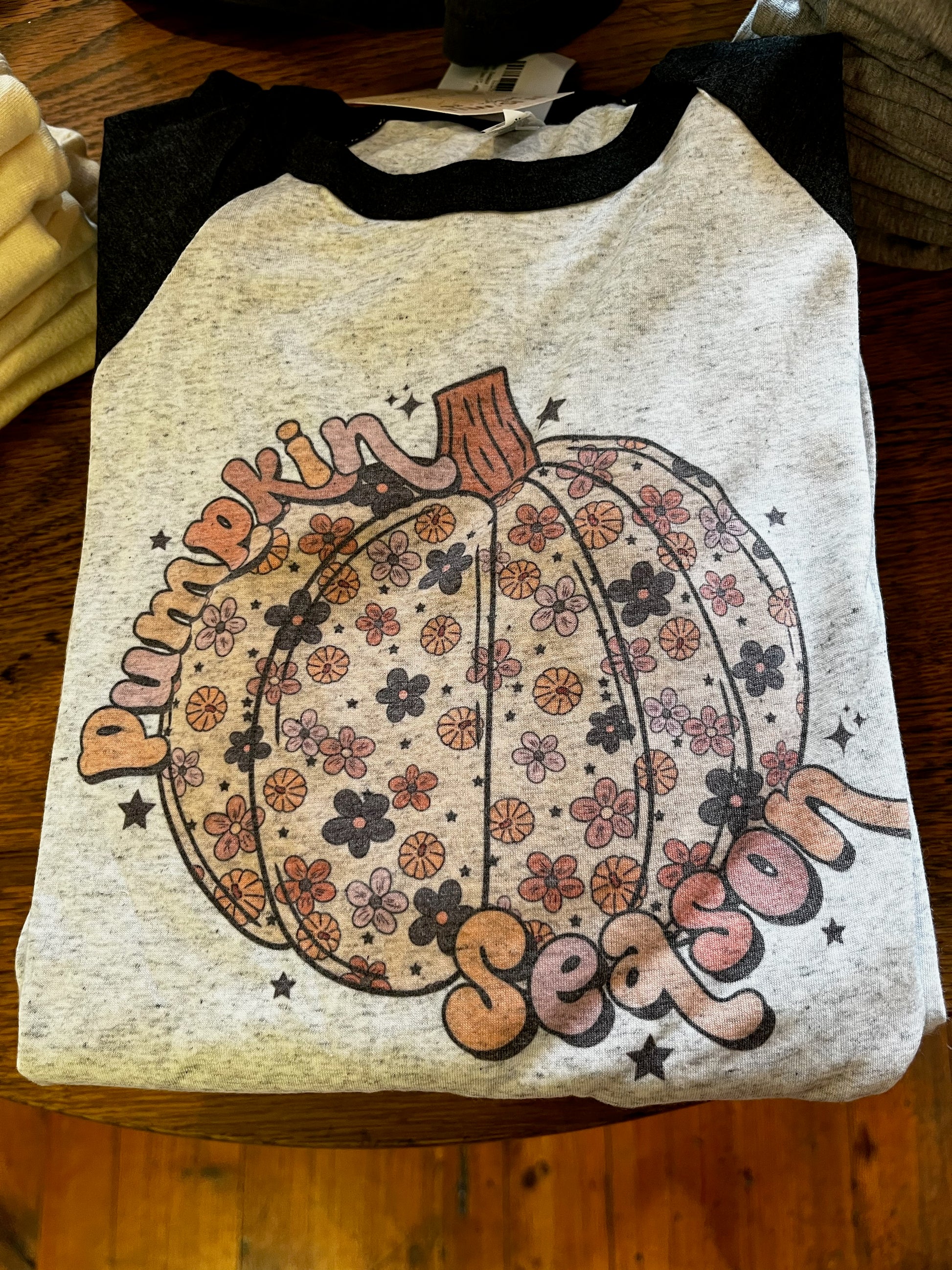 Get ready for autumn with our Pumpkin Season Baseball Tee! This adorable 3/4 sleeve baseball t-shirt celebrates the coziness of pumpkin season. Stay cute and comfy in this must-have for any fall wardrobe.