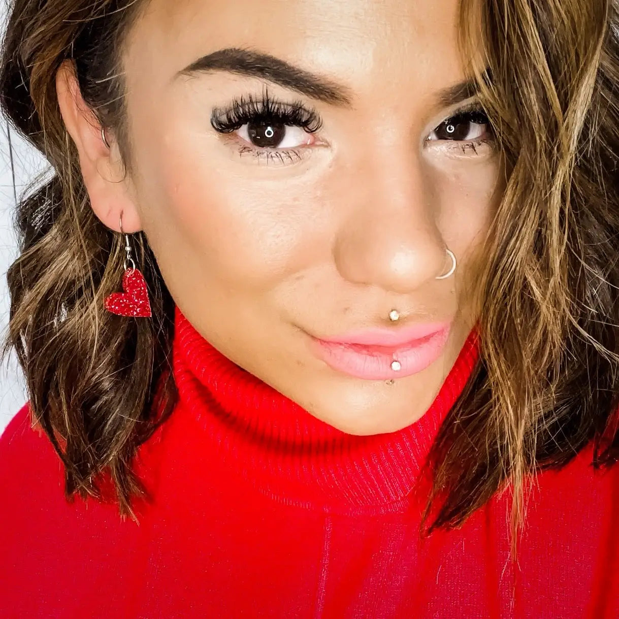 Raspberry Glitter Petite Heart Earrings