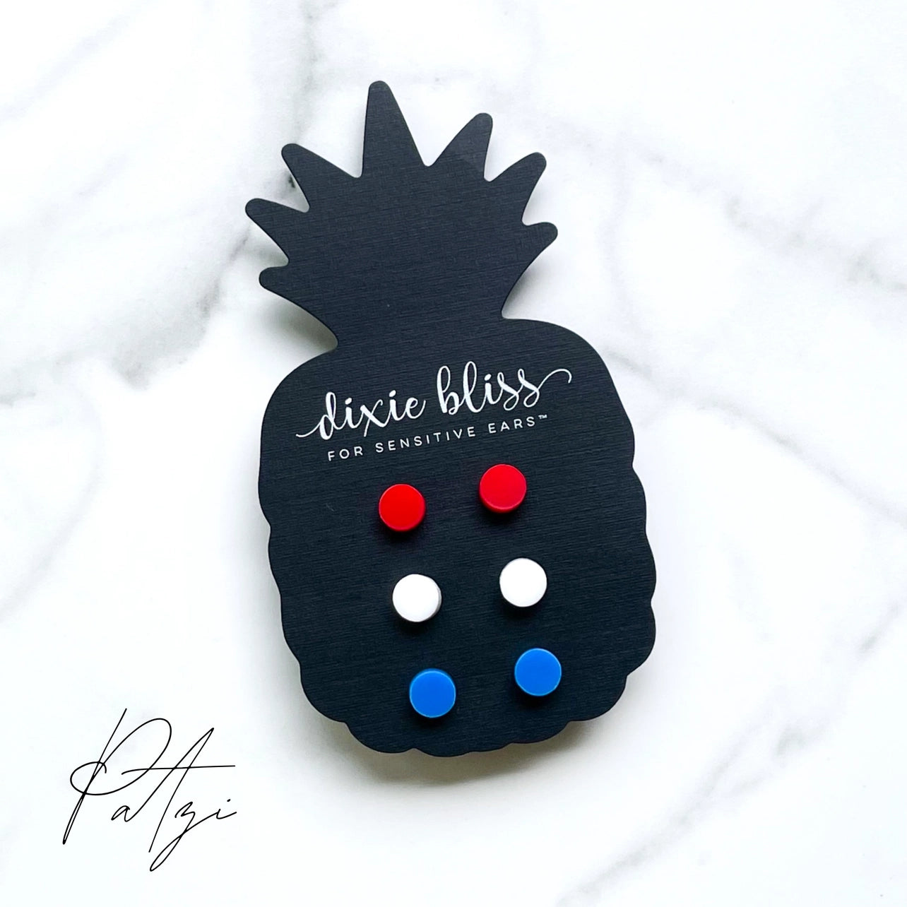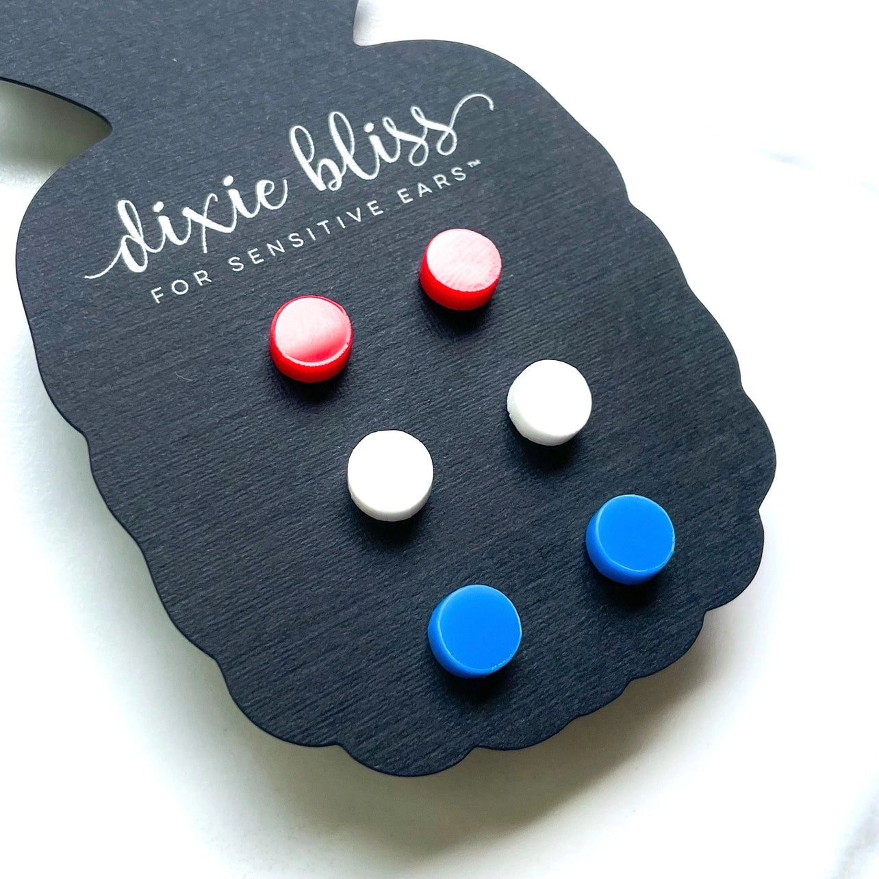 This hypoallergenic earring trio is perfect to wear to your Independence Day parades, July 4th barbecues, or any patriotic event!