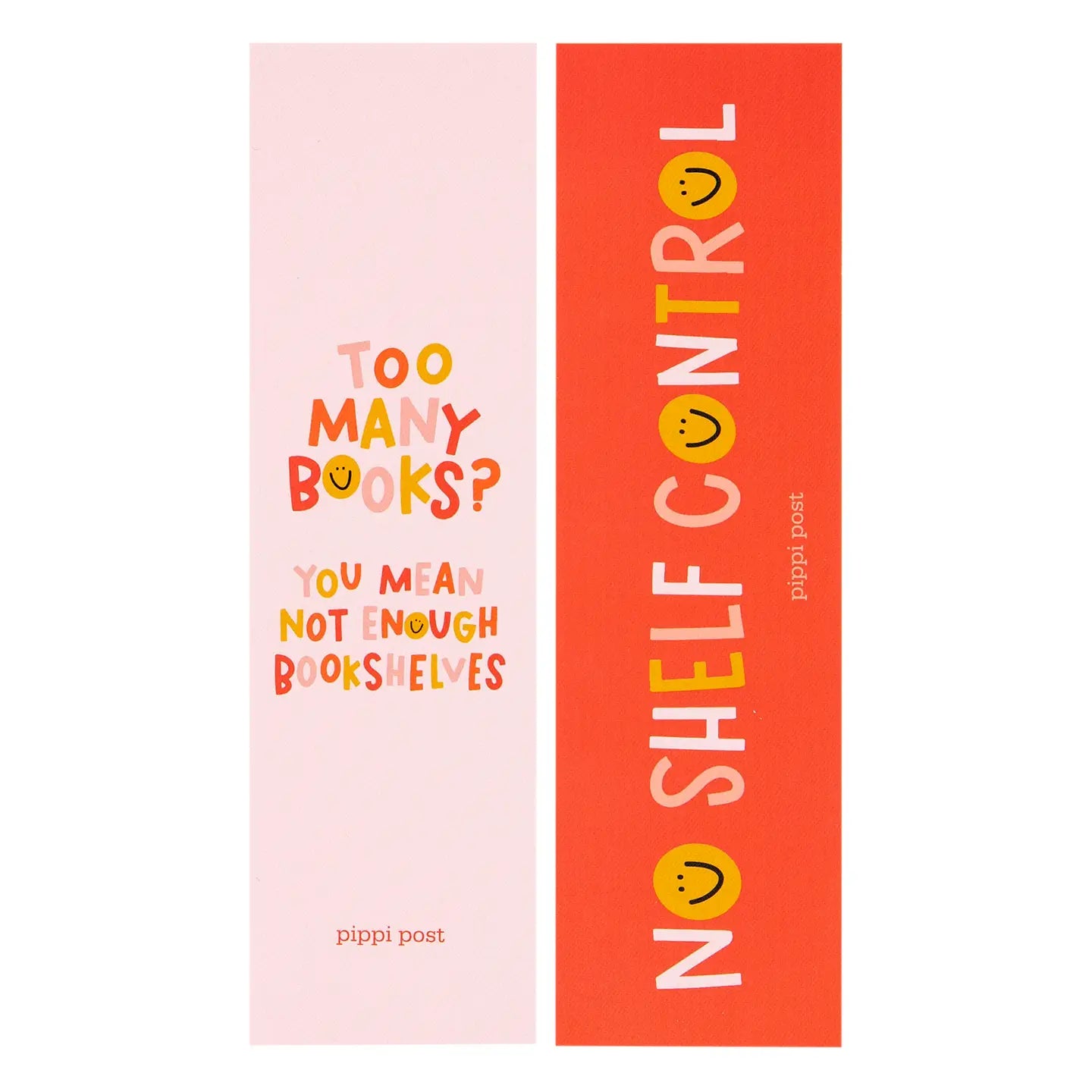 Each bookmark features cheeky phrases like “Too many books? You mean not enough bookshelves” and “No Shelf Control,” perfect for book lovers who know that there’s always room for one more title.